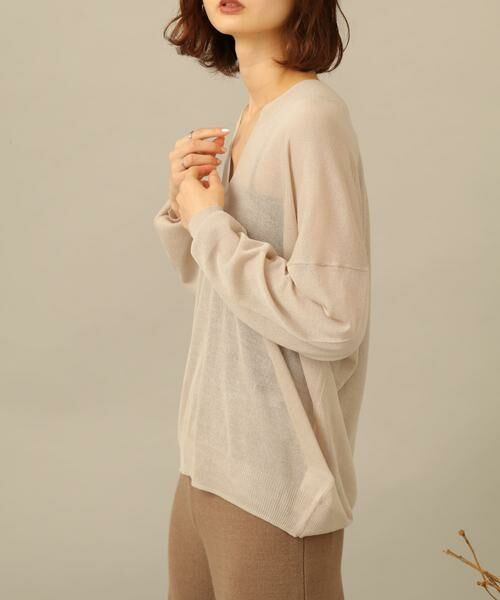 透け感がアンニュイな雰囲気のシアーセーターが登場。シーズンレスで重ね着を楽しんでいただけます。抜け感のあるVネックプルオーバーは、フェミニンなデコルテラインを演出してくれる優れもの。何にでも合わせやすくシアー感が大人の女性らしい一枚です。