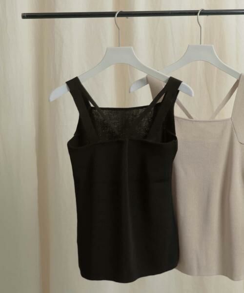 後ろがダブルストラップ、クロスデザインになっているニットタンクトップ。シアーシャツやメッシュトップなどのインナーとしてもデザインが映えるようにしています。