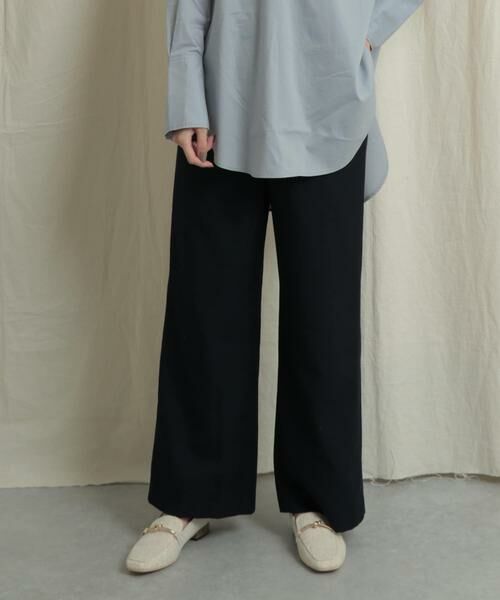 フロントはシンプル、後ろにタックとスリットを入れているので、後姿がより映えるデザインです。ヒップ周りをスッキリと仕上げているので足長効果があります。オンオフ問わず着用いただけとアイテムです。