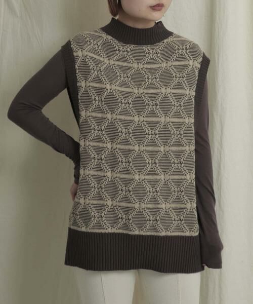 オリジナル柄で編んだニットベスト。1枚で様になるおしゃれなアイテムです。