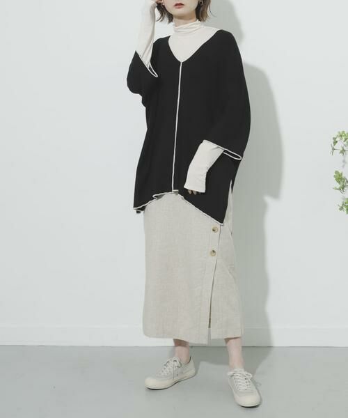季節感のあるリネンのヘリンボーンにトレンドのパイピングを取り入れたスカートです