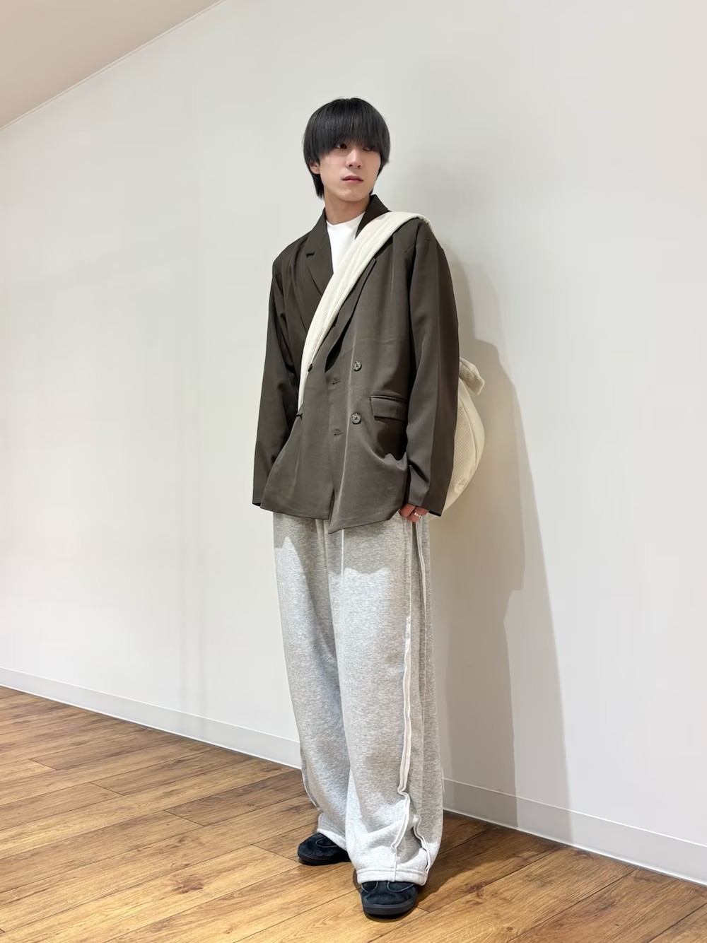 ・同素材のパンツと合わせてセットアップとして着用することで、より洗練された印象のスタイルが完成します。