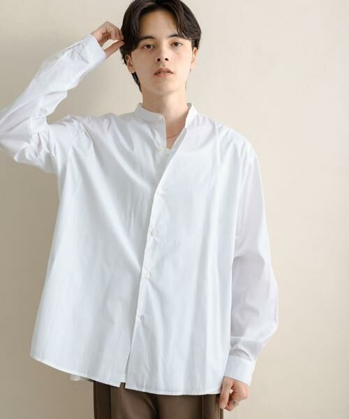 【洗練されたミニマルな着こなしを。スタイリングの幅を広げるバンドカラーシャツ】