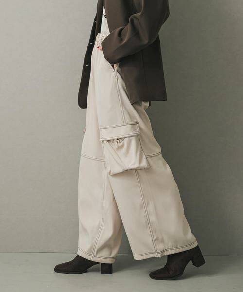 落ち感のあるポリエステル素材で、ラフな着こなしが叶うカーゴパンツ。配色のステッチが施されており、さりげないデザイン性の高さが魅力です。金具使いやルーズなシルエットも相まって、こなれ感を演出。
