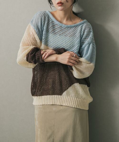 ・起毛がかった薄手素材と二種類の編み地が新鮮な印象