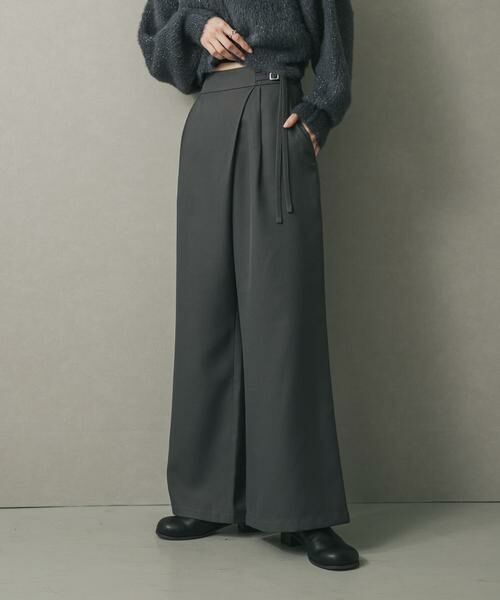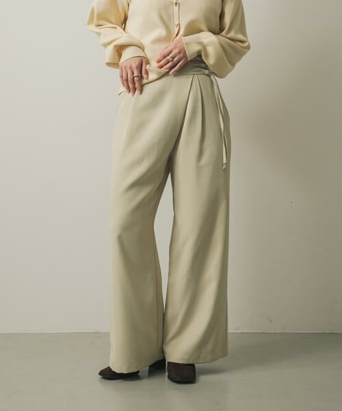 とろみのあるフルダルツイル素材を使用した、上品なルーズパンツ。ウエスト部分にあしらわれたワンポイントのデザインが、シンプルながらも個性的な印象を与えます。リラックス感のあるルーズなシルエットで、体型を気にせずゆったりと着用できるのが魅力。きれいめなトップスと合わせて、洗練されたスタイルを楽しめます。