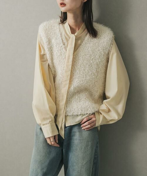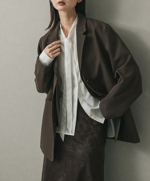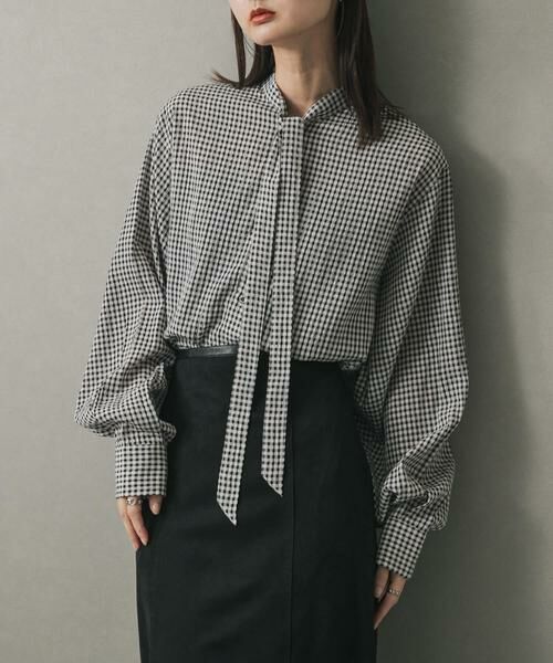 きれいめでハリのある素材を使用した、上品な印象のシャツ。襟元に付いた細いタイが、シンプルながらも個性をプラスします。リボン結びで女性らしく、そのまま垂らしてマニッシュに、とアレンジ次第で様々なスタイルを楽しめるのが魅力。パンツにもスカートにも合わせやすいので、オフィスからデイリーまで活躍します。
