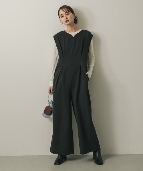 【スタイルアップも叶う。上品なハートネックオールインワン】