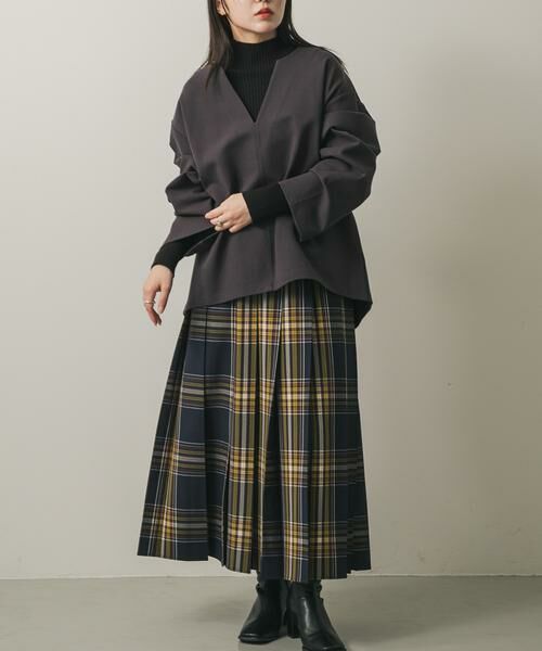 とろみのある素材感が上品な印象の、深Vネックトップス。すとんと落ちるルーズなシルエットが、気になる体のラインをさりげなくカバーしてくれます。