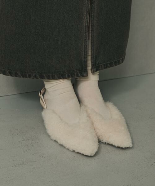 ・程よいボリュームのファー素材が足元にアクセントをプラス