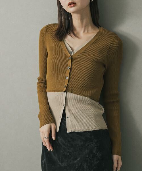 一枚で、トレンドの重ね着スタイルが楽しめるレイヤードニット。ストレッチの効いた柔らかなリブニット素材で、身体に心地よくフィットします。デザイン性の高いアイテムなので、シンプルなボトムスに合わせるだけで、おしゃれな着こなしが完成。ウエスト位置が高く見えるデザインは、スタイルアップ効果も期待できます。