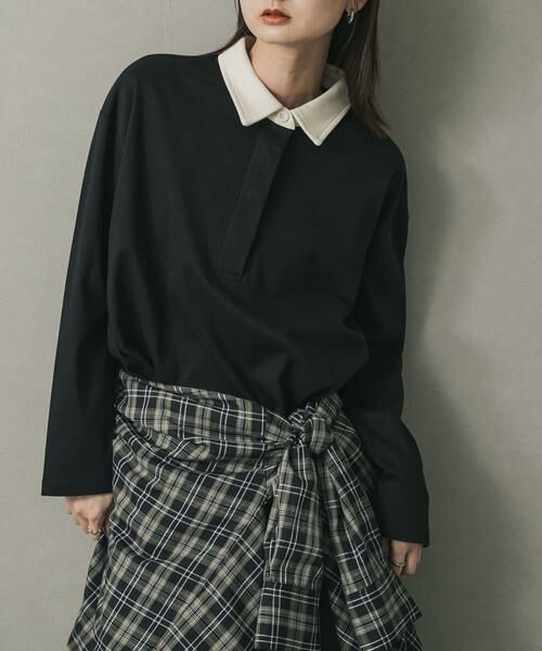 きれいめなカットソー素材を使用したポロシャツ。カジュアルになりすぎない上品な素材感で、大人のデイリースタイルにぴったりです。ゆったりとしたルーズなシルエットで、着るだけで程よい抜け感を演出。背中にはシルバーのプレートがあしらわれており、シンプルながらも個性が光ります。パンツやスカートと合わせるだけで、洗練された着こなしが完成します。