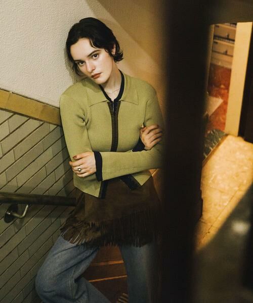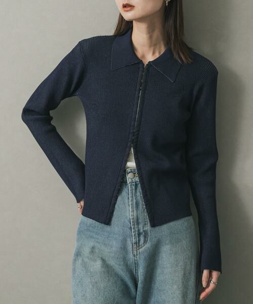 身体のラインをきれいに見せてくれる、すっきりとしたシルエットのニット。程よいフィット感で着心地も抜群です。袖口に入ったスリットと微配色が、シンプルな中にさりげない個性をプラス。フロントのホックもアクセントになり、一枚でサマになるデザインです。パンツにもスカートにも合わせやすいので、デイリーユースにぴったりです。