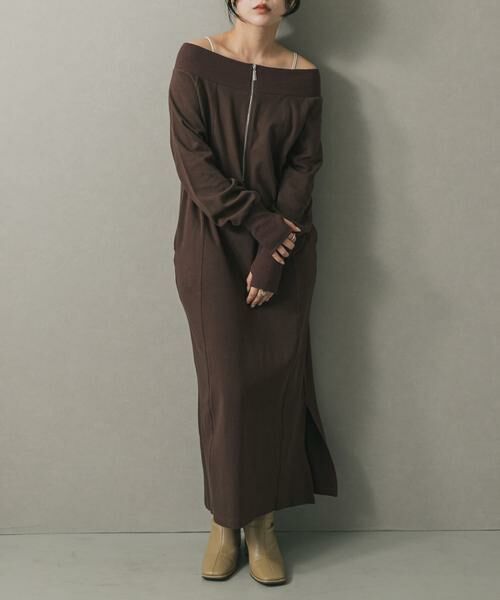 きれいめなポンチ素材を使用した、上品なワンピース。無駄のないシンプルなデザインですが、フロントのジップがさりげないアクセントになり、着こなしに抜け感をプラスします。すっきりとしたシルエットは、一枚でさらりと着るだけで、スタイルを美しく見せてくれるのが魅力。デイリーから少しきれいめなシーンまで活躍する、万能な一枚です。