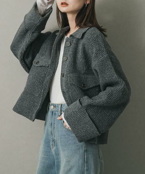 温かみのあるニット素材を使用した、ショート丈のカーディガン。コンパクトな丈感なので、ハイウエストのボトムスやワンピースと合わせるだけで、スタイルアップと旬のバランスの良い着こなしが叶います。ワイドな袖が、シンプルな中にも可愛らしさをプラス。さっと羽織るだけで、こなれ感のあるスタイルが完成します。