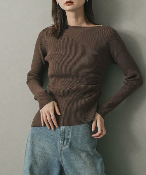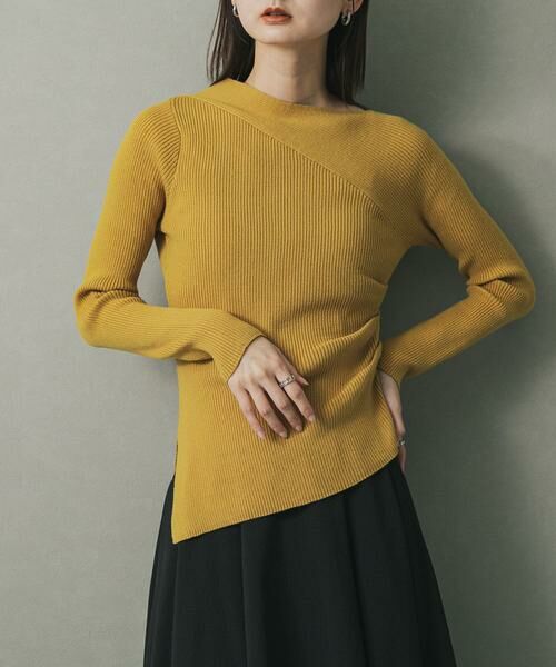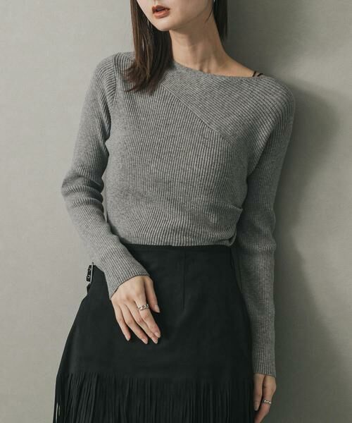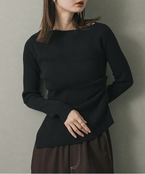 シンプルな装いに、こなれ感をプラスしてくれるオフショルダーリブニット。鎖骨を美しく見せるアシンメトリーなデザインが、さりげない女性らしさを引き立てます。サイドに入ったタックがウエストをすっきりと見せ、タイトすぎない絶妙なシルエットを実現。