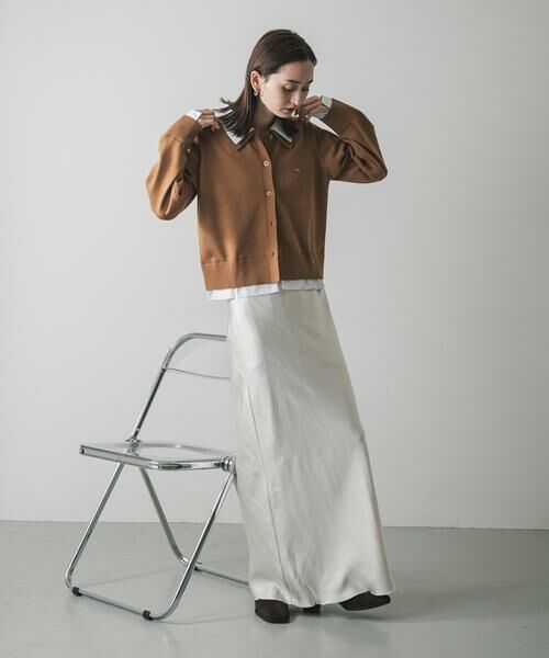 もちもちとした肌触りの良いニットを使用したカーディガン。シャツを重ね着したように見えるレイヤード風のデザインが、着るだけでぐっとお洒落な印象に格上げしてくれます。コンパクトな丈感なので、ハイウエストのボトムスとも相性抜群。忙しい朝でもコーディネートに迷わない、着回し力抜群の一枚です。