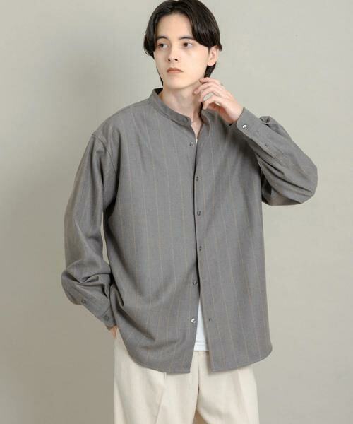 ウールタッチストライプバンドカラーシャツ