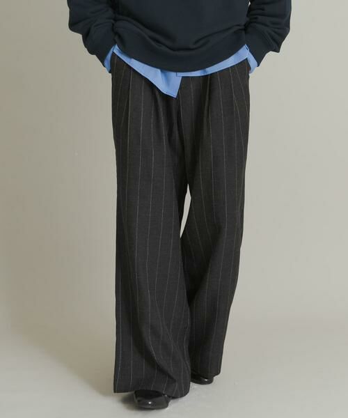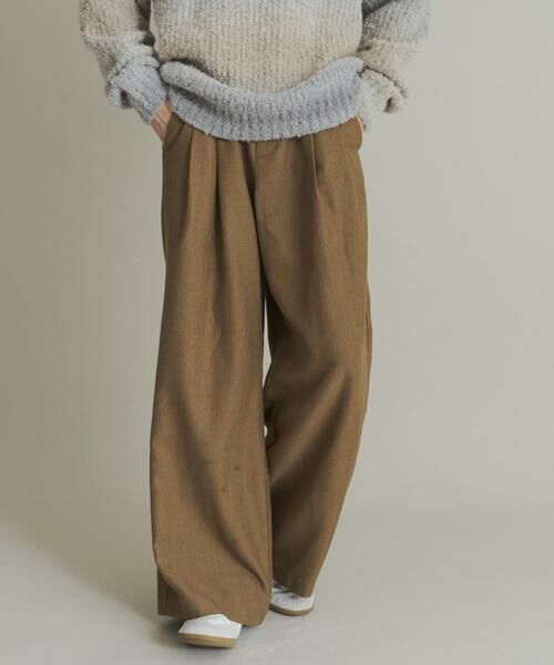 【着こなしに上品な抜け感を。セットアップも楽しめるウールタッチワイドパンツ】