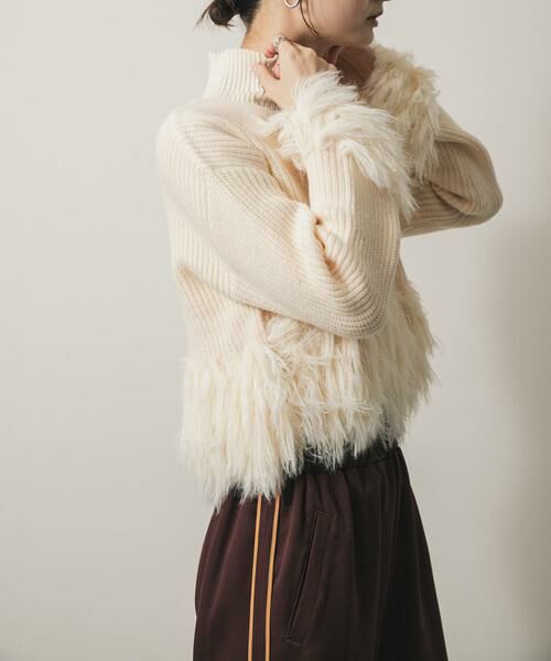 モチっとした肌触りの良いニットに、フェザーのようなフリンジをドッキングしたデザインカーディガン。裾と袖口のフリンジが、動くたびに軽やかに揺れて、着こなしに華やかさとトレンド感をプラスします。広めに開いた襟元は、顔まわりをすっきりと見せてくれる効果も。ボタンを留めてトップスとして着るだけで、おしゃれが完成するアイテムです。