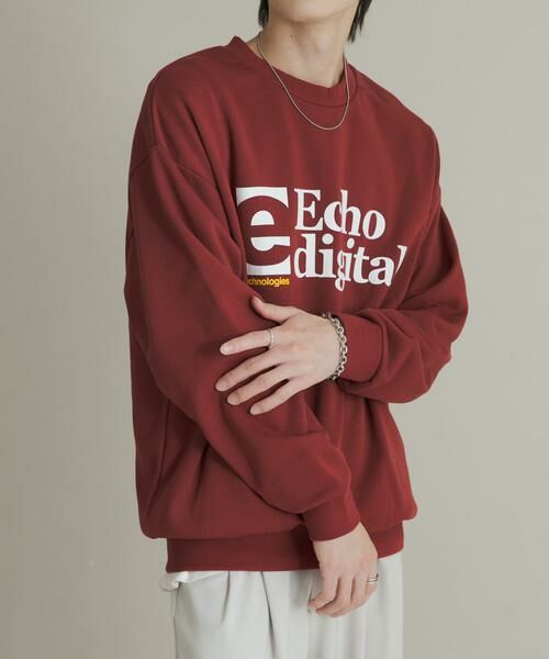 【鮮やかなロゴが際立つクリーンな裏起毛トップス】