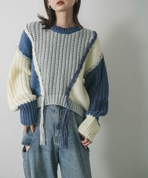 【着こなしの主役。パッチワークデザインニット】