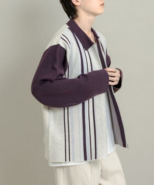 【着こなしに個性をプラス。旬のストライプ柄で魅せるジップニットカーディガン】