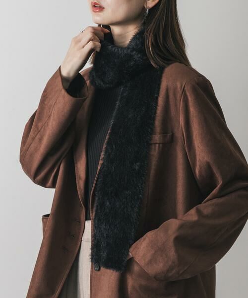 肌触りが気持ち良いシャギー素材を使用した、トレンドのナローストール。首元にさっと巻くだけで、秋冬らしいムードと上品な華やかさをプラスします。細身のシルエットなので、もたつかずすっきりと着用でき、アウターとのバランスも取りやすいのが魅力です。