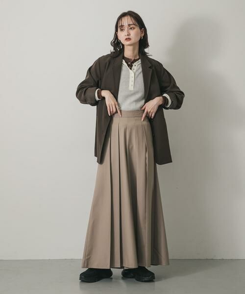 マニッシュな雰囲気を持つ素材を使用したタックパンツ。深く入ったタックデザインが、まるでプリーツのような美しい縦のラインを作り出し、スタイルアップを叶えます。バサッとしたボリューム感のある裾は、コンパクトなクロップド丈トップスと合わせることで、絶妙なバランスのトレンドスタイルが完成します。