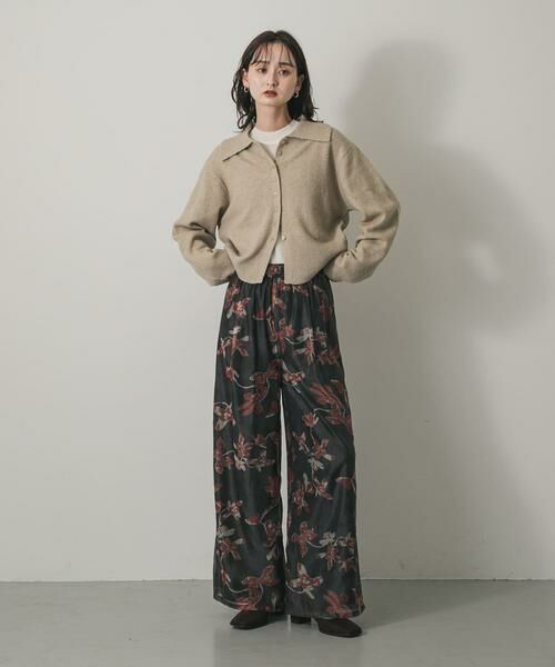 軽やかなオーガンジー素材に、大胆な大柄の花柄プリントを施したワイドパンツ。透け感のある素材なので、シンプルなニットやスウェットと合わせるだけで、ぐっと華やかでトレンド感のあるスタイルが完成します。ウエストはゴム仕様でストレスフリーな履き心地。秋冬の着こなしに軽やかさと彩りを添えてくれるアイテムです。