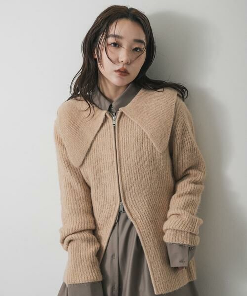肌触りが気持ち良いふわふわのニットを使用したカーディガン。大きなドロップ襟が顔まわりを華やかに見せ、着るだけでトレンド感のあるスタイルが完成します。ウエストがすっきり見える計算されたシルエットなので、ボタンを閉めてトップスとして着るのもおすすめ。着回し力抜群のアイテムで、秋冬のおしゃれを楽しめます。