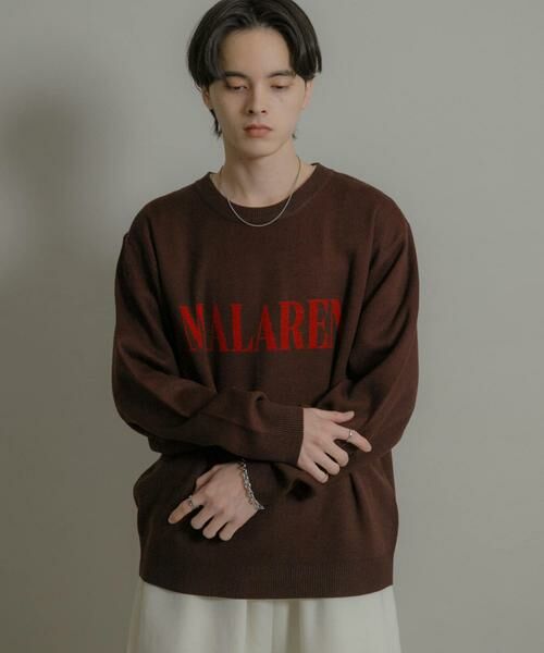 セミフレアパンツやワイドスラックスと合わせ、ニットのロゴを主役にした都会的なスタイルがおすすめです。レザーのショートブーツと合わせることで、足元からクールに引き締めるのが旬です。インナーに白のハイネックを重ねたり、コーデュロイパンツと合わせて季節感を出すのもおしゃれです。