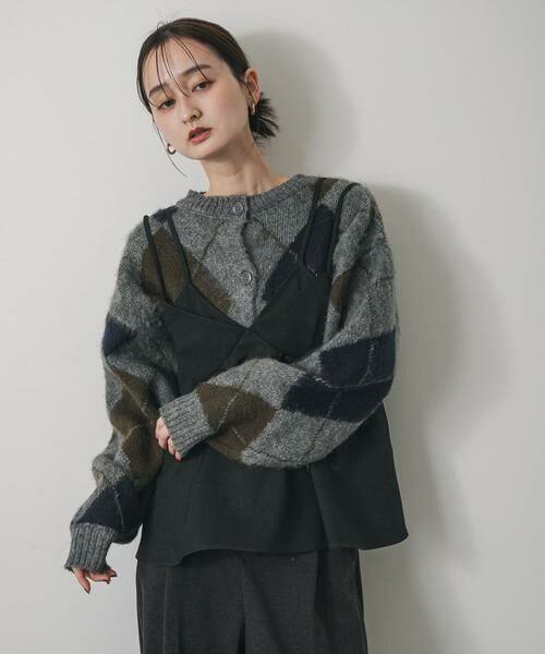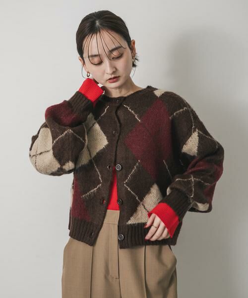 ふっくらと柔らかな風合いが魅力のニットカーディガン。存在感のあるアーガイル柄が、一枚で着こなしの主役級の華やかさを演出します。ゆったりとしたシルエットなので、インナーにタートルネックなどを合わせるレイヤードスタイルも楽しめます。秋冬のムードを高めてくれる万能な一枚です。