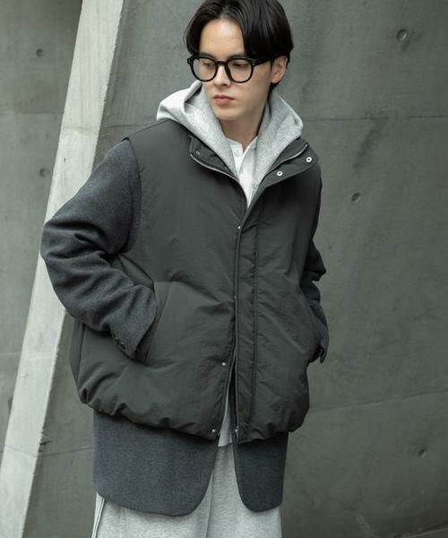 モックネックニットやハイネックカットソーをインナーに合わせた、クリーンなレイヤードがおすすめです。ワイドスラックスやセミフレアパンツと合わせれば、都会的で洗練された大人カジュアルが完成します。スウェットパーカーと合わせて、フードを出したストリートミックスな着こなしも旬なテクニックです。