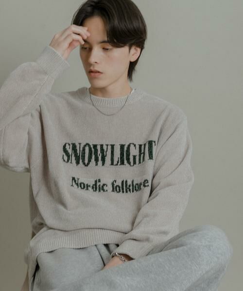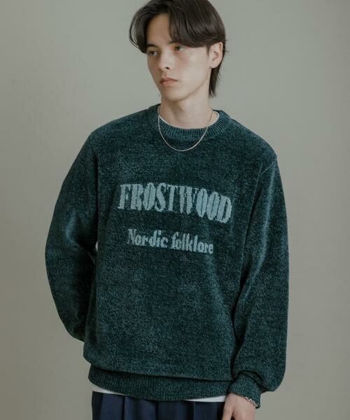 【グラフィックで魅せる、柔らかなモール糸で仕立てたニットプルオーバー】