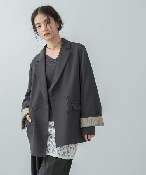 ・裏地がストライプ柄なので、袖を折り返してデザインを楽しめる