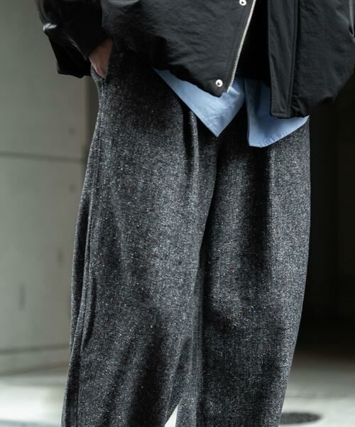 カラーネップワンタックバレルパンツ
