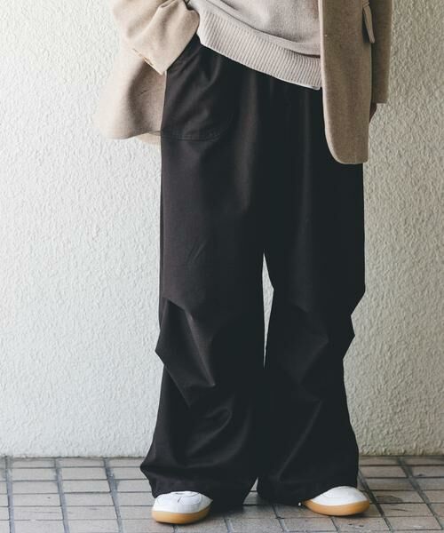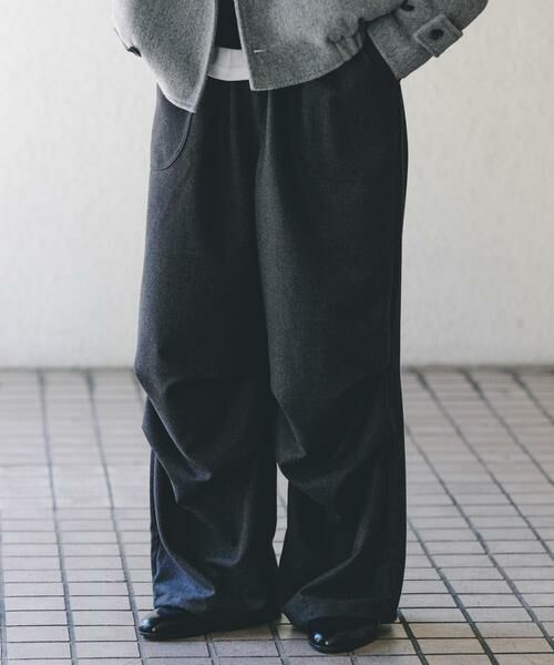 このアイテムはWEBと一部店舗での取り扱いです。【冬も暖かい、膝下切り替えが旬のウールライクパラシュートパンツ】