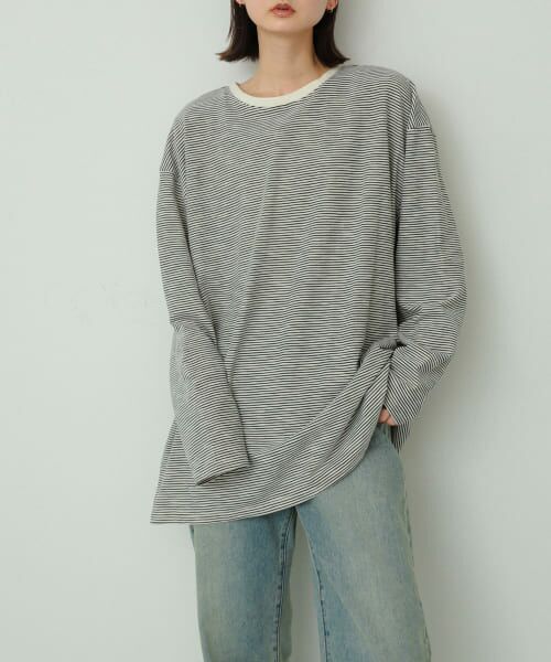 〇幅広いスタイリングに相性がいい細めボーダー