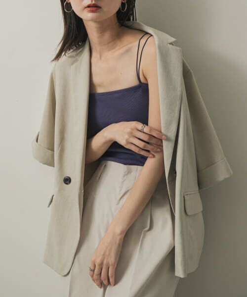 デイリー使いできるアイテムなので、シャツやシアートップスのインナーとして着ると、程よい抜け感のあるこなれた印象に◎ゆったりニットのインナーとしてもおすすめです!