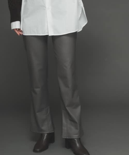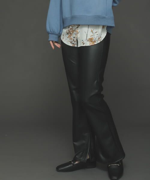 フレアシルエットが魅力のフェイクレザーレギンスパンツ