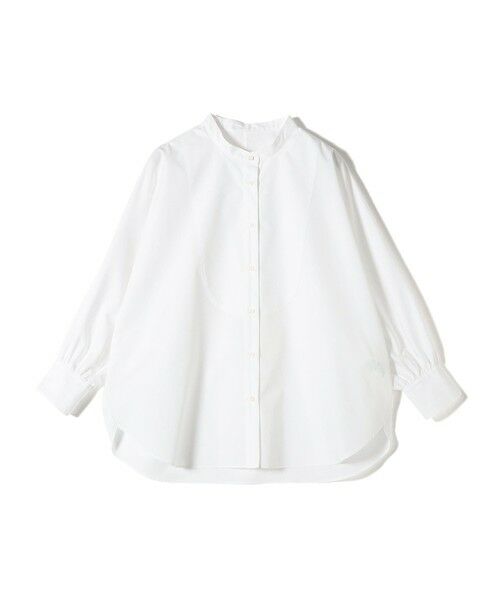 前身のヨーク切り替えとバンドカラー、体が泳ぐシルエットが着心地よく通常のシャツとは違ったデザインシャツです。