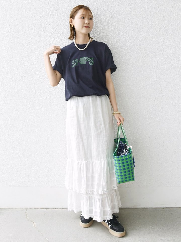 身長:164cm / 普段サイズ:38・MEDIUM / 体型:細身(骨格ウェーブ) 肩幅:なで肩・狭め / パーソナルカラー:イエベ春 【着用レビュー 】 着用アイテム:Tシャツ / 着用サイズ:M ■着丈:ヒップにかかるくらいに丈です。 ■サイズ感:全体的にゆったりとしています。 ■素材感:なめらかな表面感のやわらかいコットン素材です。 ■着心地:生地がやわらかく、着心地が良いです◎ロゴのカラーがさりげないアクセントに◎ 着用アイテム:スカート / 着用サイズ:ONESIZE ■ウエスト:程よくゆとりがありました。 ■ヒップ:ヒップラインは気になりませんでした。 ■レングス:かかと下くらいまでの丈です。(フラットシューズ合わせだとウエスト部分の折り返しが必要でした。) ■着心地:ウエストがゴム使用なのでとても楽な履き心地です。