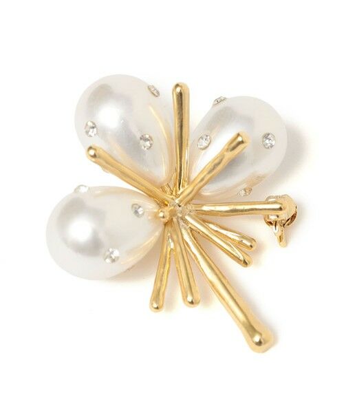 異なる素材を組み合わせることで、華やかさを演出したブローチ。