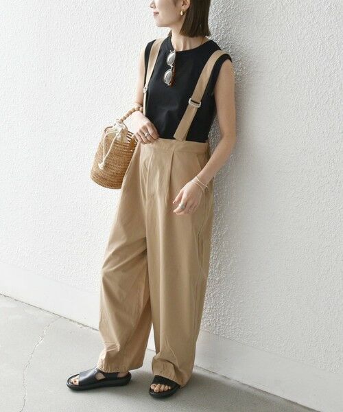 【ベージュ】サロペット:ベージュ、タンクトップ:ブラック