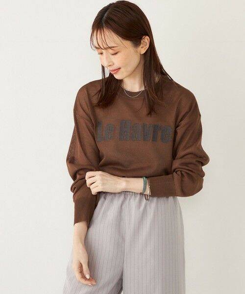 シアーニットにロゴを施した、大人のカジュアルスタイルにぴったりなトップス。