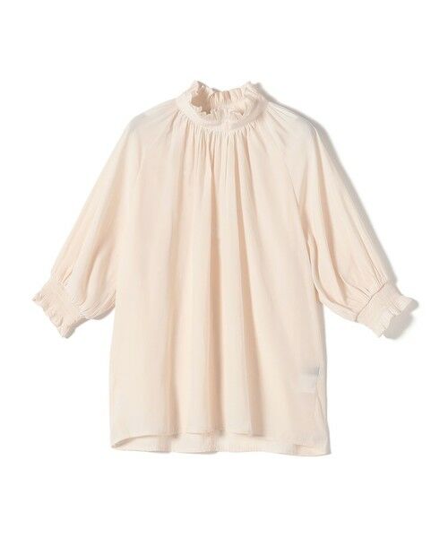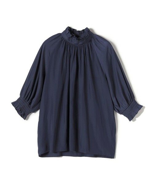 首元と袖に施したフリルデザインと、ギャザーによって生まれるドレープ感が女性らしさを引き立てます。
