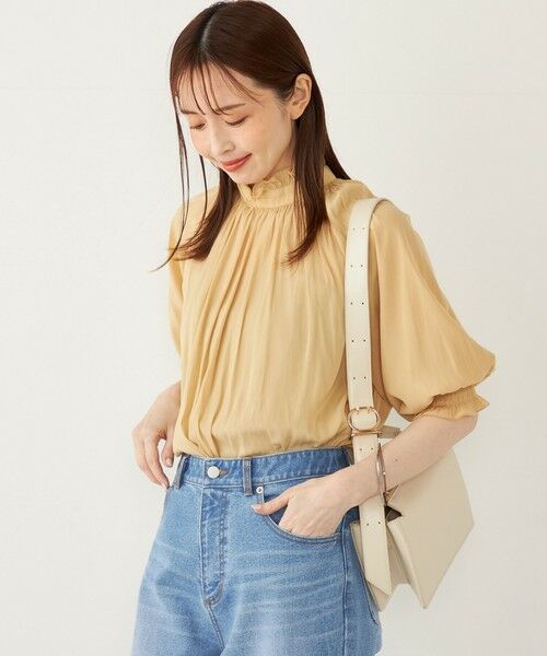 女性らしいとろみと上品な光沢感が特徴のサテンブラウス。
