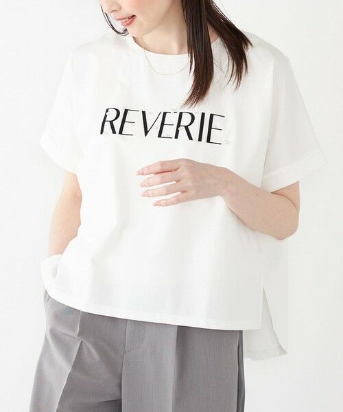 フロッキーロゴとパールモチーフがコーディネートのアクセントなってくれるカットソー。