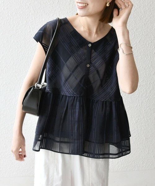 さりげない透け感で、女性らしさを演出したティアードブラウス。